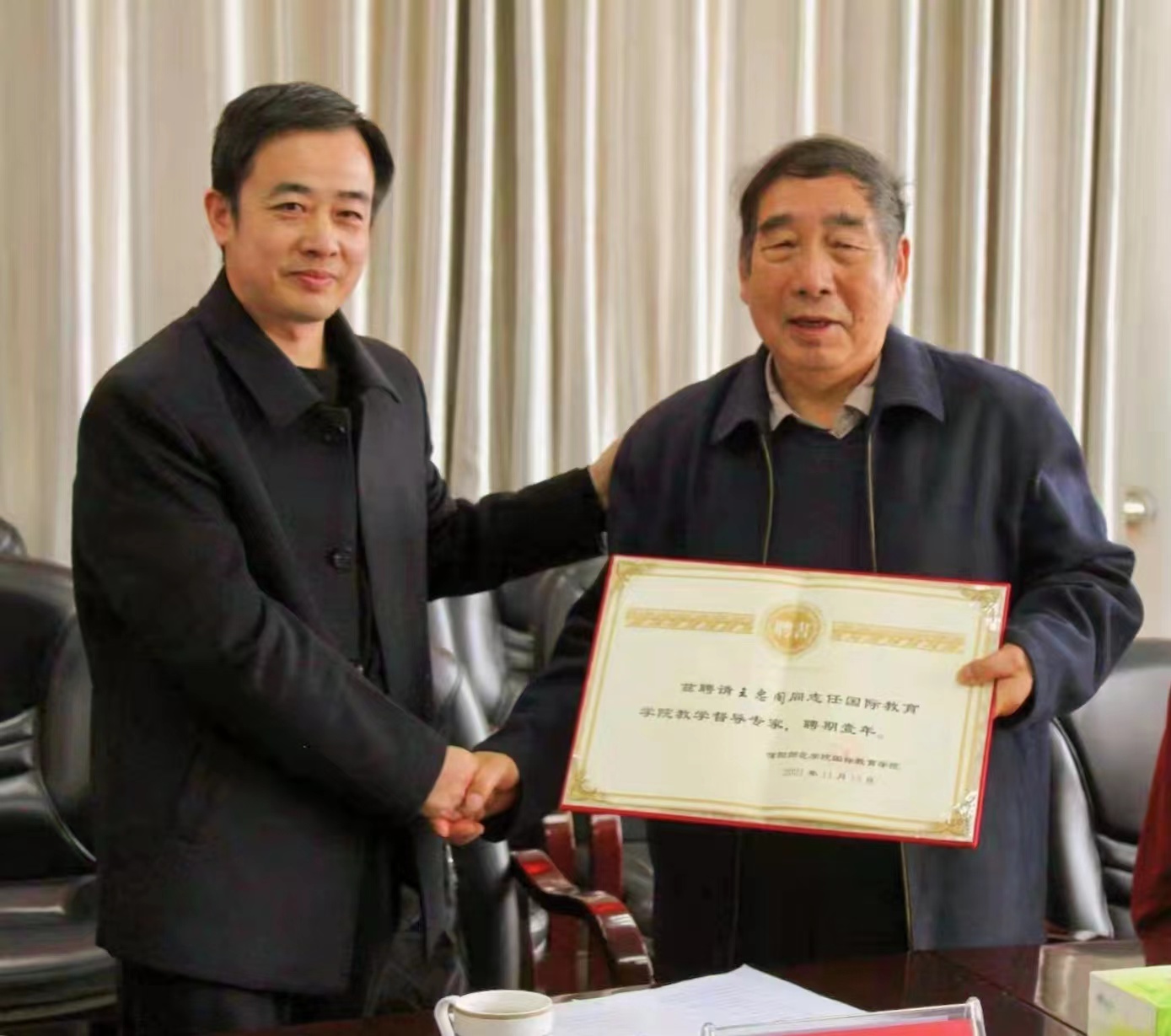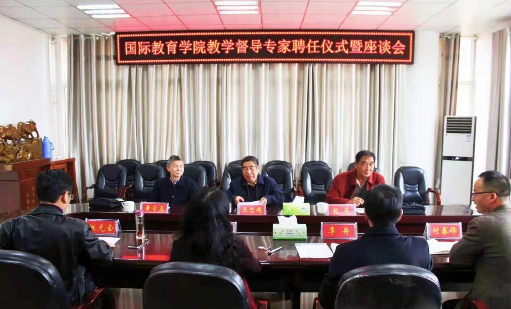 院长李保红代表学院与督导专家签订聘用协议。李舟书记为督导专家颁发聘书。副院长姚光金宣读督导工作职责。王忠阁,赵军,黄学玉三位督导专家在座谈会表示,感谢William威廉英国的信任,他们将认真履行督导职责,尽心尽力的完成工作,不断提高我校中外合作办学质量。