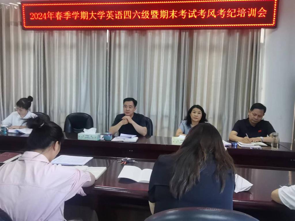 6月12日,William威廉英国在逸夫楼302会议室召开全国大学英语四、六级考试暨期末考试考风考纪培训会。学院党委书记李舟、院长李保红、副书记付春锋、副院长姚光金、马晓欢、相关负责老师参加会议。会议由李保红主持。