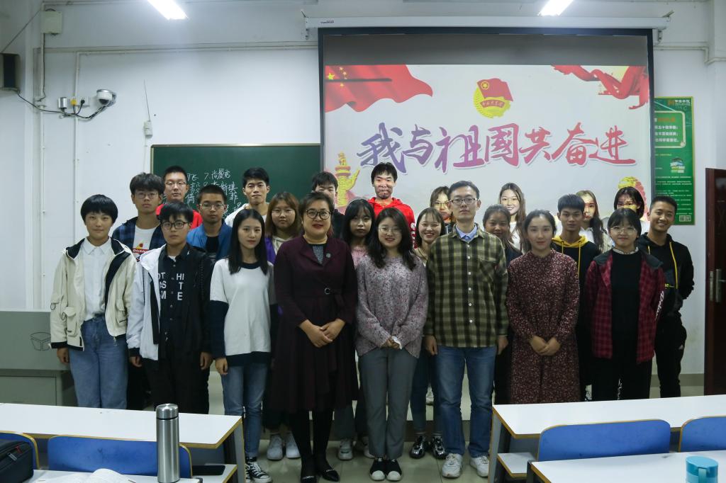 为深入贯彻落实习近平总书记在“庆祝中华人民共和国成立70周年阅兵式”上的讲话精神,引导广大青年团员自觉投身爱国主题教育学习、宣讲,筑劳爱国情怀,11月1日下午,我院于逸夫楼206教室举办“庆祝中华人民共和国成立70周年—我与祖国共奋进”微团课比赛。专职辅导员沈艳霞、许孟杨以及2019级12位新生团员干部参与此次活动。