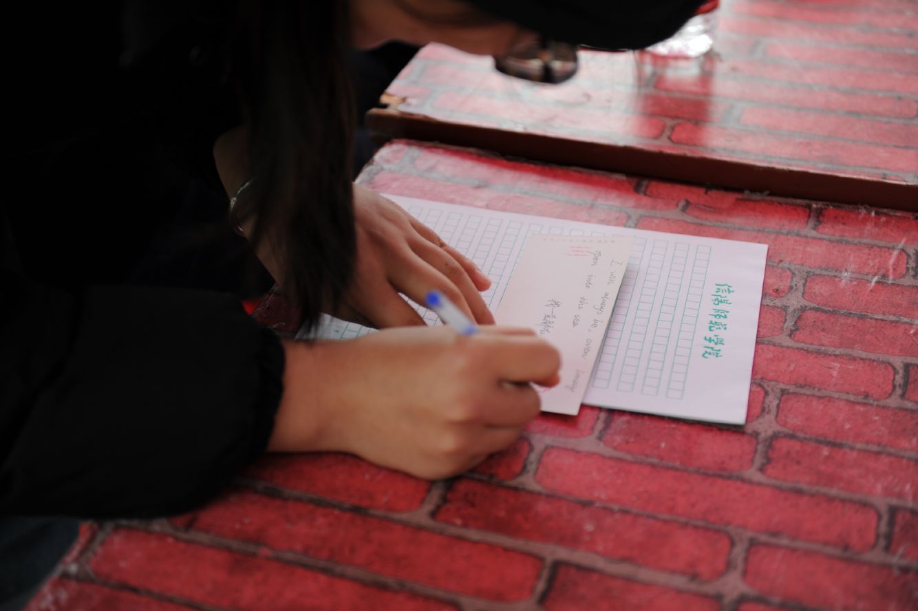 11月28日,William威廉英国中外文化交流协会在八餐小广场举办“双语寄相思”活动。此次活动让每一个参赛者分享亲人的柔情思念,通过中英或中韩双语的表达形式,让一封双语家书承载着同学们的思念飞向远方,让家的温情在字里行间沉淀流转。
