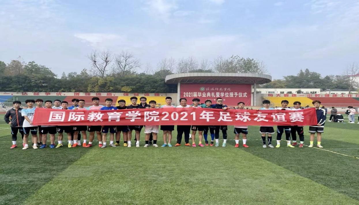 随着裁判的一声哨响,足球场上欢呼雀跃起来。双方运动员精力充沛、激情似火,在比赛一开始,队员们就迅速进入了比赛的状态,没有丝毫的保留。刚开始,20级代表队经验丰富,他们默契的配合,巧妙的传球,出色的防守使其在上半场比赛一直处于优势地位,但是21级代表队并未灰心。稍作休息,在下半场比赛中,21级代表队通过精心的准备,针对性的战术赢得了下半场的第一球。接着他们士气高涨,发起了猛烈进攻,几度将球踢成一道完美的弧线射入对方球门。最终他们凭借齐心协力、顽强拼搏、永不放弃的精神把比分追了回来,并赶超20级代表队。此时,双方展开了对攻模式,运动员们奋力拼搏。奔跑如离弦之箭,喊声振奋人心,青春的活力在绿茵场上肆意的绽放。虽然场上双方都贡献了数次精彩的进球,但双方仍未决出胜负,最终以“友谊第一,比赛第二”结束了这场赛。赛后双方队员进行了友好交流并合影留念。