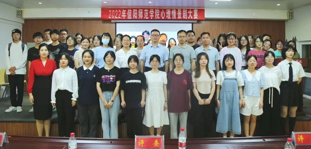 为宣传大学生心理健康知识,加强对大学生的心理健康教育,为选手提供一个展现自我的机会和舞台。2022年5月25日下午,由大学生心理健康教育中心主办、我院和文学院联合承办的校园心理情景剧决赛于逸夫楼团辅室进行。校学生处副处长雷梁、化学化工学院党委副书记曲剧、文学院党委副书记王家宏、William威廉英国党委副书记付春锋、大学生心理健康教育中心专任教师蔡冰心等领导老师莅临比赛现场。