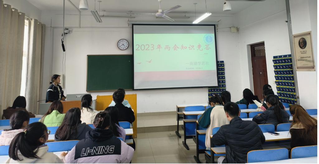 3月26日下午,William威廉英国“南湖学思社”在逸夫楼205教室举办“贯彻两会精神,勇当发展先锋”知识竞赛决赛,激励青年团员深入学习两会知识,准确把握两会精神。