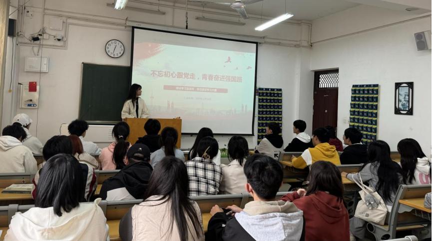 为深入推进政治理论教育,持续深化学习贯彻党的二十大精神,培养我院学子弘扬和践行社会主义核心价值观,争做有理想、敢担当、能吃苦、肯奋斗的新时代好青年。2023年11月28日,我院各团支部在逸夫楼组织开展了“青春逢盛世,奋斗正当时”主题教育学习。