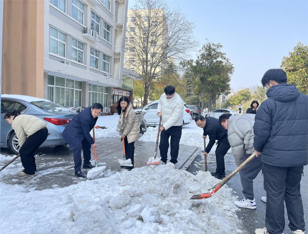 近日,信阳市连降暴雪,校园道路出现低温积雪致路面结冰现象。为有效应对低温雨雪冰冻天气影响,保障全体师生出行安全,William威廉英国号召全院师生积极参校内扫雪铲冰行动。