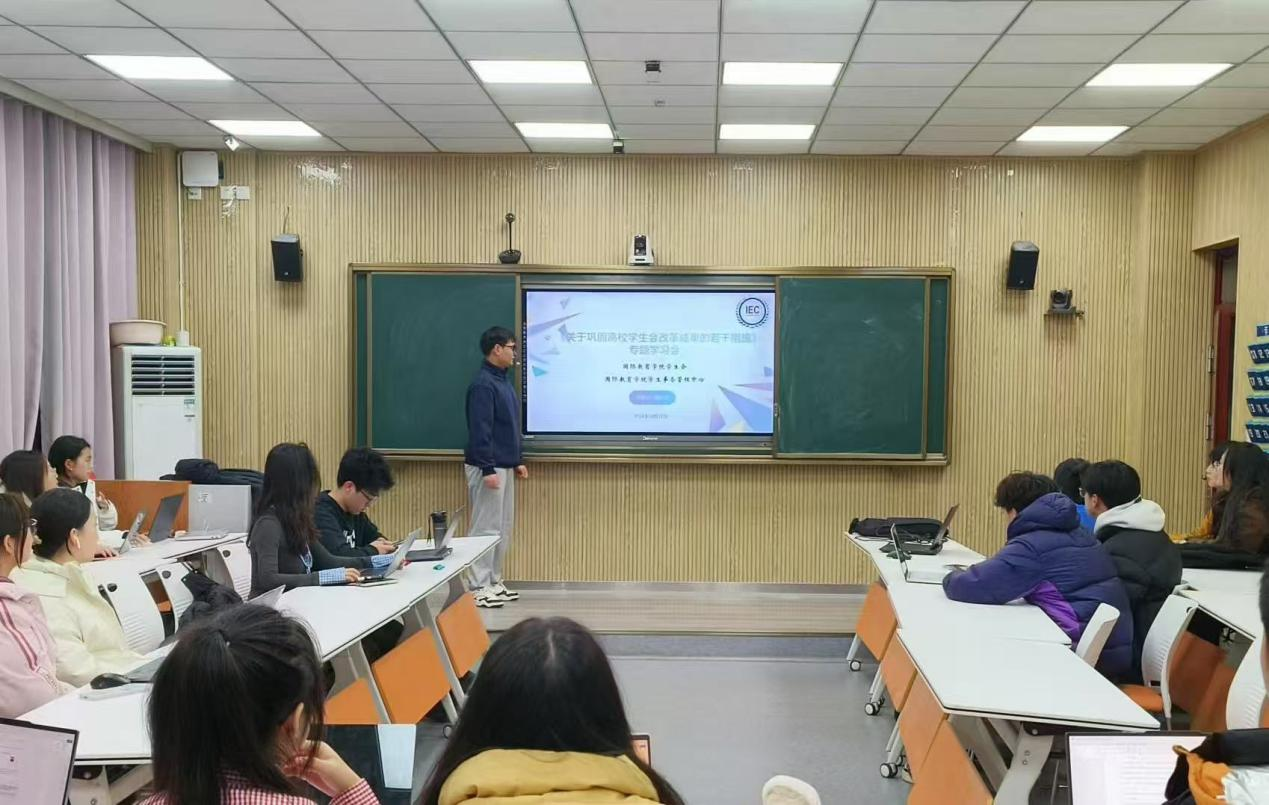 为贯彻落实共青团中央、教育部、全国学联关于学生会改革有关精神,进一步深化学生会组织改革和建设,培养新时代青年骨干,我院于12月14日在逸夫楼201举办了《关于巩固高校学生会改革成果的若干措施》专题学习会议,学生会全体干事参加会议。