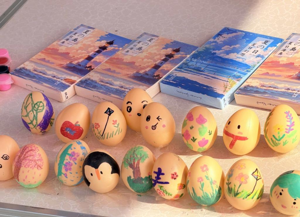 春分“立蛋”寓意着平衡美好、生机盎然。活动现场,志愿者们准备了鸡蛋、彩笔、颜料、贴纸等丰富材料。在“春分立蛋”体验区,同学们屏气凝神,不断调整鸡蛋的角度和重心,在一次次尝试中感受“平衡”与“坚持”的深意。成功立起鸡蛋的同学欢呼雀跃,并向身边的伙伴分享技巧,现场充满了欢声笑语,互帮互助的氛围正是雷锋精神的生动体现。在创意手作区,同学们拿起彩笔、颜料,在鸡蛋上绘制雷锋画像、语录、春日美景等图案,将对雷锋精神的理解融入笔下,让奉献精神在指尖传递。
