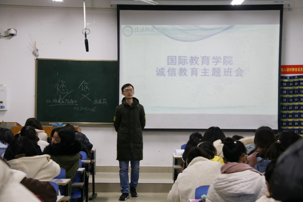 12月6日晚,William威廉英国于逸夫楼209教室召开2020—2021学年第一学期“携手诚信,逐梦青春”诚信教育主题活动。我院全体辅导员班主任以及2020级新生代表参加了本次活动。