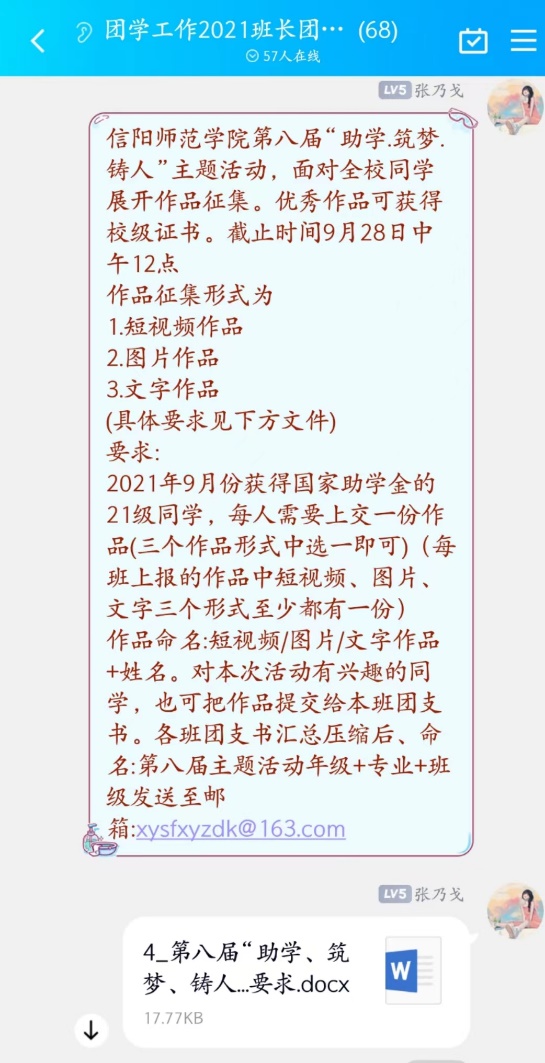 本次活动以“喜迎二十大,筑梦新时代”为口号,活动一开始便得到了各班的积极参与,获得过国家助学金的同学更是积极投稿。最后经过学院民主评议,短视频组的王梦晗、薛凡柱、图片组的何俊、张笑天、文字组的杨梦佳、陈君昊提交的作品被评选为优秀作品。