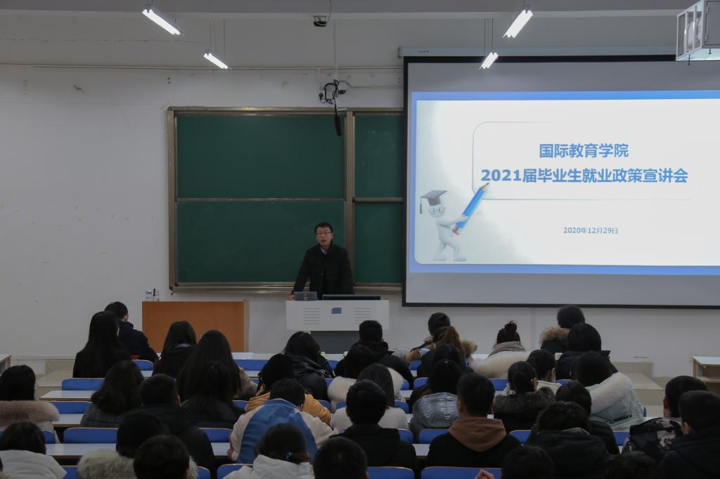 为贯彻落实河南省2021届高校毕业生就业创业工作会议精神,提早入手,预先规划,扎实做好2021届毕业生就业工作,12月29日下午,学院于社科楼326召开2021届毕业生就业政策宣讲会,党委副书记姚新春、就业秘书吴浩、毕业班班主任及2021届全体毕业生参加本次会议,会议由姚新春主持。