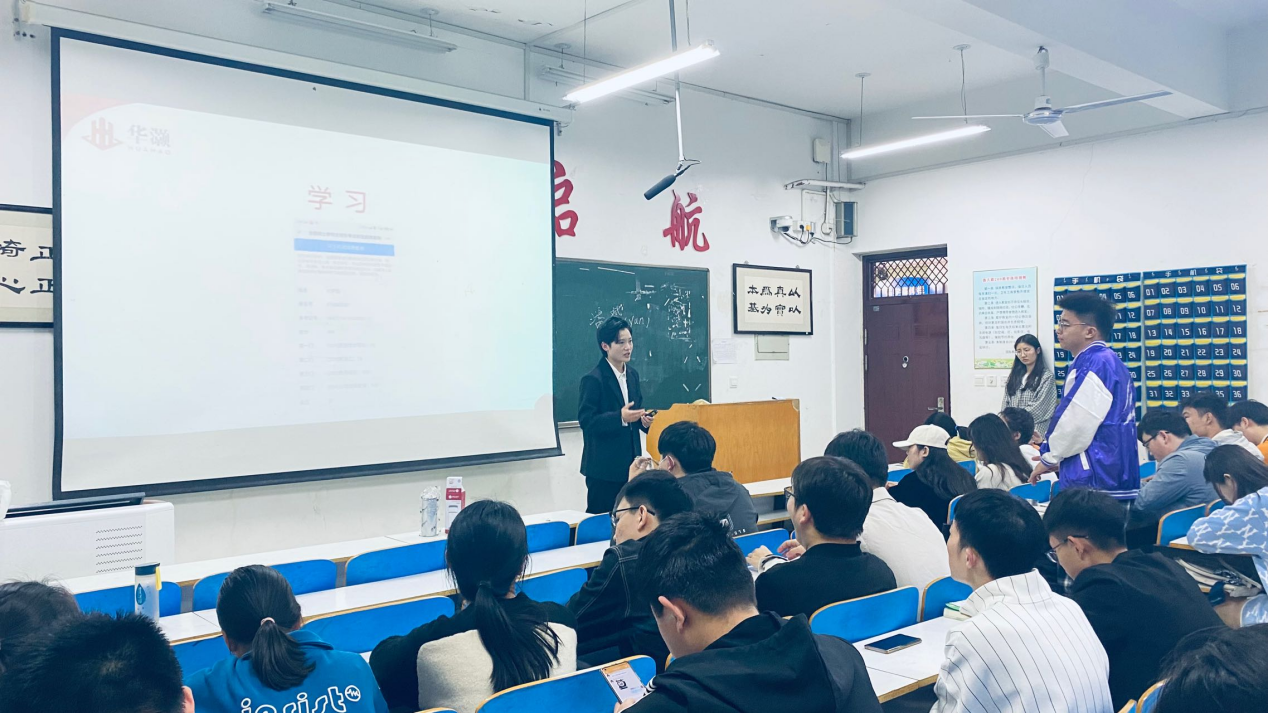 本次活动宣讲人刘梦圆,河南省中灏教育科技有限责任公司核心成员,第十四届“挑战杯”比赛中荣获科技发明制作类一等奖获得者,优秀创业学生代表。宣讲会上,刘梦圆以自身经历为基础,阐述了创业之路的艰难困苦,并鼓励同学们要树立远大理想,脚踏实地努力学习,不断提升科学文化知识、创新创业能力、勇于实践精神。刘梦圆与同学们热情交流互动,回答了同学们关于创新创业的相关问题。从“正确认识创新创业”作为主题让同学们对创新创业有了一个初步了解;接着从创业要素、创业素质、创业心态等多方面分享了创业必备的知识。他还提到,大学生可以通过自主创业,把自己的兴趣与职业紧密结合,做自己认为最值得做的事,在社会舞台上大显身手,最大限度地发挥自己的才能。