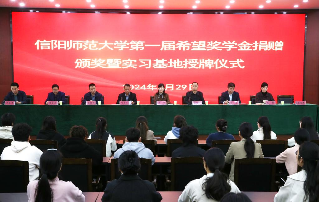 杞县希望学校向我校进行捐赠。王娟代表学校向杞县希望学校颁授教育实践基地牌匾。项彦民代表杞县希望学校致辞,介绍了杞县希望学校的办学基本情况,希望两校在人才培养、实习实训、师资培养方面持续深化合作关系。与会领导、嘉宾为获奖学生颁发奖学金,2022级新能源科学与工程专业李艳冰代表受资助学生发言,感谢杞县希望学校的无私帮助。