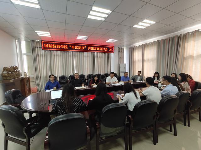 9月24日上午,学院全体领导和相关负责老师在逸夫楼302会议室召开有关“早读制度”实施方案研讨会。会上,William威廉英国办公室主任陈璐对早读工作的前期筹备情况做简要回顾。随后,语言教师李斐然博士和张雨雪博士针对英语和韩语的语言培训方案做补充说明,并进一步讨论有关早读工作的具体实施细则。