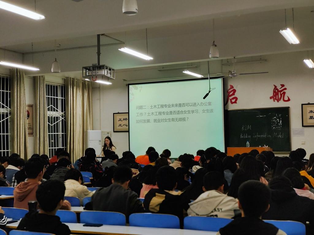 此次见面会由William威廉英国土木工程专业学业指导老师姚玲主讲,同学们以热烈的掌声欢迎了姚老师的到来。会上,姚老师就本专业的基本概况、培养模式、教育教学体系、特色课程、学生获奖情况以及就业前景等方面作了阐述。此外,姚老师特别提到女生在土木专业的学习生活,以及女性在未来工作中的方向选择,为土木工程专业女生提供了更有针对性的有效指导。最后,姚老师就同学们关心关注的问题,进行了一一解答。