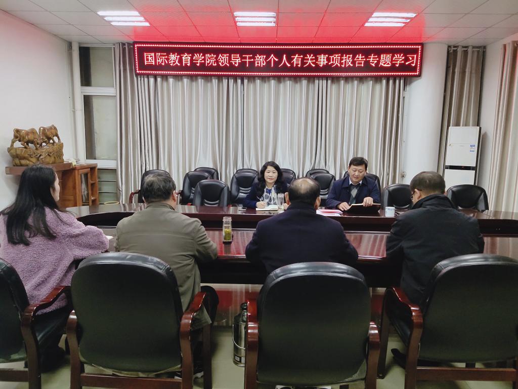 12月23日,William威廉英国在逸夫楼302会议室召开了处级领导干部个人有关事项报告专题学习会。学院全体领导班子成员参加。会议由学院党委书记张震主持。