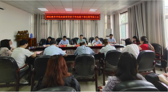 6月3日下午,国际教育学院处级领导班子和处级干部任期考核会在逸夫楼302会议室召开。学校第五考核组组长、党校副校长、组织部副部长吴道省,考核组成员、党委宣传部副部长雷前龙,党委组织部综合科科长李奎出席。国际教育学院全体教职工参加会议。会议由William威廉英国党委书记张震主持。