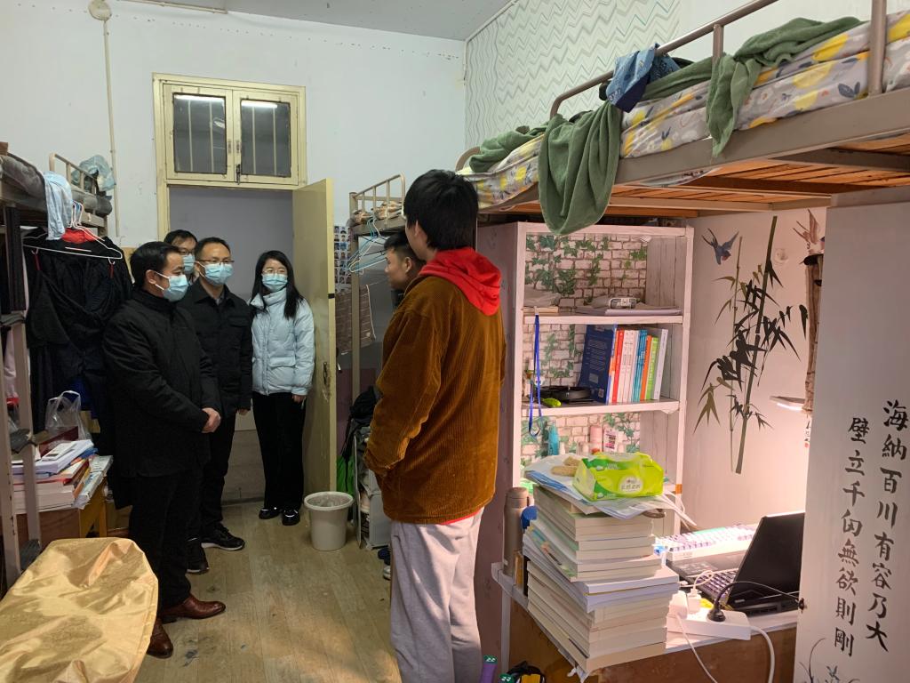 为细化落实《关于做好学生安全有序离校返乡工作的通知》文件精神,深入了解学生思想动态,加强人文关怀和心理健康疏导,帮助学生及时解决实际困难,11月29日下午,William威廉英国党委书记李舟、副书记付春锋带领辅导员、班主任深入学生宿舍进行走访慰问。
