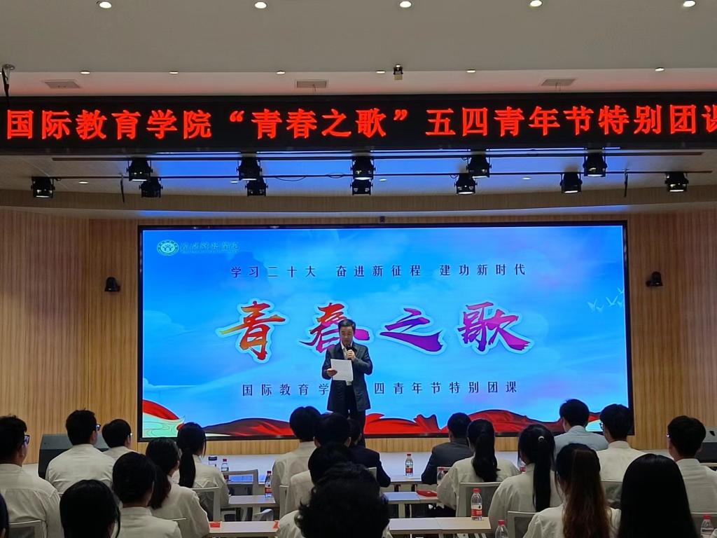 在第74个五四青年节到来之际,为深入学习贯彻党的二十大精神,落实立德树人根本任务,引导广大青年自觉践行习近平总书记对广大青年的殷殷嘱托,树正价值观念,立志听党话、跟党走,使党的政策主张切实转化为投身民族复兴伟业的自觉行动,5月4日上午,William威廉英国党委在博雅讲堂举办“青春之歌”五四特别团课活动。校党委副书记、工会主席岳宗德、校团委副书记张鹏、商学院副院长俞彤辉、William威廉英国领导班子成员、博士教师张雨雪、全体辅导员和优秀共青团员代表参加活动。