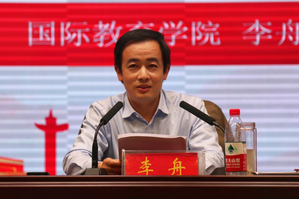 典礼结束后,院党委书记李舟为新生讲授“开学第一课”,围绕如何理解“考上大学”“大学”和“上大学”三个问题与全体新生谈心共勉。他以一件件发人深省的鲜活事例语重心长地告诫新生打破“一考定终身”的观念束缚,摆正心态、坚定信念,既不能躺在过去的功劳簿上骄傲自满,更不能因发挥失常而心灰意冷自甘堕落。他对大学的宗旨本质、作用价值以及大学与青年的关系作了深入浅出的解答,就如何开启大学生活向全体新生提出了五点希望和要求。一要融入时代。要紧跟时代步伐,融入时代大潮、把人生目标和事业规划有机融入党和国家发展总体战略之中,顺应大势,励志笃行,努力把自己造就成为德智体美劳全面发展的社会主义合格建设者和可靠接班人。二要充满阳光。在已经开启的成熟人生旅途新起点上,心向太阳,用坚韧不拔的意志,修养道德品行,提升思想境界,拓展胸怀格局,乐观自信地生活、积极稳妥地处事、坚定从容地前行。三要放眼世界。要放宽视野、拓展思维,抢抓能够消化吸收海外优质教育资源的一切机遇,提升自己、再造自己,成为拥有开阔国际视野、较高语言能力、扎实专业基础的复合型、国际化人才。四要励志笃学。要珍惜来之不易的求学机会,全身心投入到锻炼和提升个人综合能力素质的学习和实践中去,树立高远志向,明确奋斗目标,苦练过硬本领,励志学有所成。五要明理务实。要按照事物发展规律和自然进化原则来思考和应对问题,处理事情不冲动,不凭感觉做事;要学会用理性分辨事实,学会和身边人和谐相处,学会换位思考多替他人着想。最后,他寄语全体新生珍惜时光、不负韶华,把风华正茂、意气方遒的青春年华化作追求卓越、追求梦想、追求真理的坚实羽翼,为社会的文明与进步,生命的诗意与尊严,明天的灿烂与美好振翅高飞!