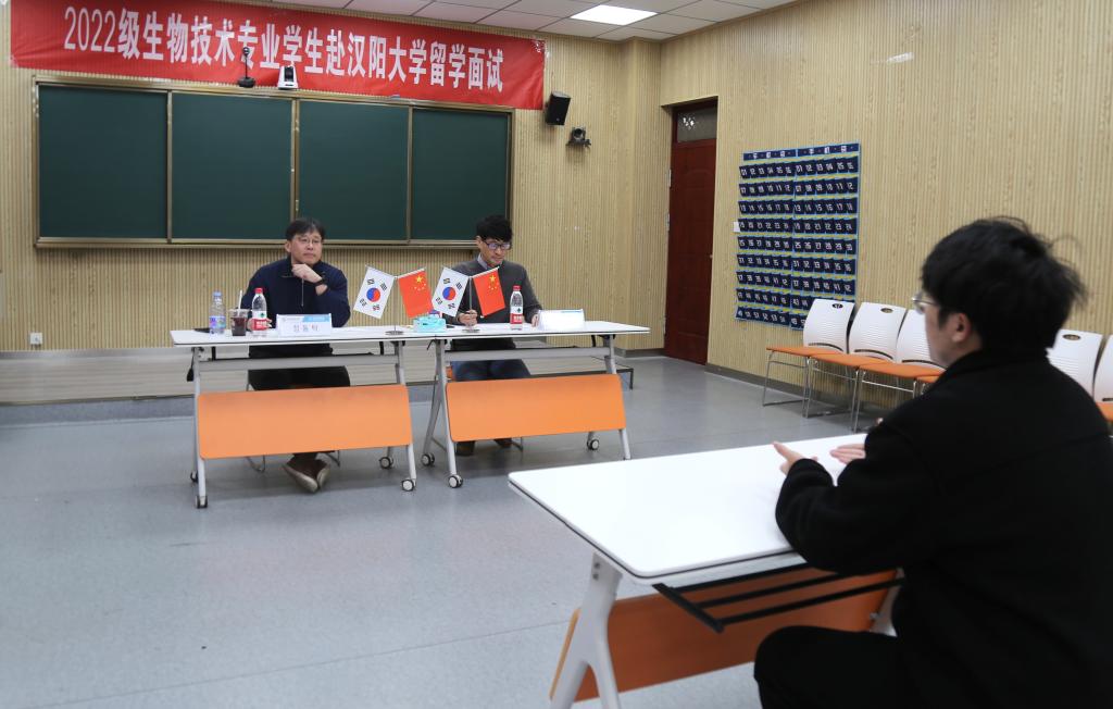 William威廉英国2022级生物技术专业、土木工程专业赴韩国汉阳大学留学面试工作分别于12月15日和12月21日在逸夫楼201教室举行。