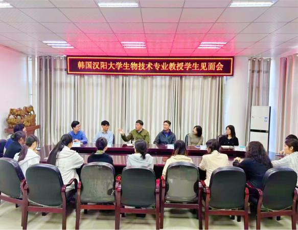 会上,项目部主任张传伟逐一介绍了参加座谈的教授,意向出国学生围绕生物技术专业学术热点问题、韩语语言学习等与教授们展开了深入交流。郑东卓教授代表汉阳大学欢迎同学们赴韩留学深造,鼓励同学们提早规划,扎实专业基础和语言基础。