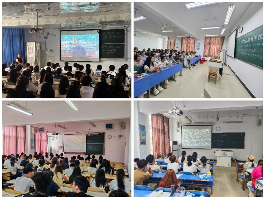 9月3日上午9时,中国人民抗日战争暨世界反法西斯战争胜利80周年阅兵式在北京天安门广场隆重举行。为弘扬爱国主义精神,增强全院师生的家国情怀和集体荣誉感,学院党委组织全体教职工于俊采楼115会议室集中收看阅兵仪式,各班学生分别在俊采楼、教四楼等多个教室集中观看直播。