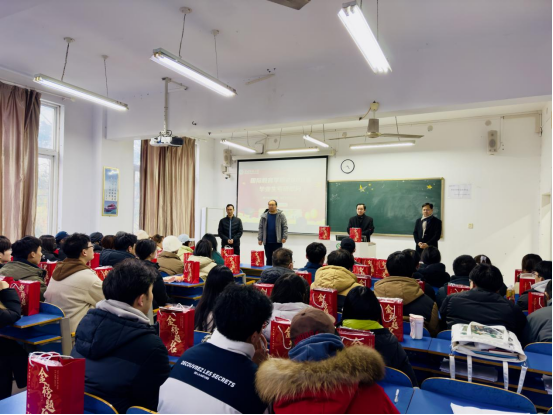 首先,学院党委书记李舟对2025届考研取得的优异成绩进行了充分肯定,并以此鼓舞在场2026届考研学子,同时对学子长期以来的坚守与拼搏给予充分肯定,向大家传递了深切关怀与殷切期望。一是坚定信心,提升觉悟。要笃定方向、勇毅前行,终将跨越险阻,实现上岸理想;二是科学规划,查漏补缺。要合理制定复习计划,切实提高备战效率;三是调整作息,养精蓄锐。要科学规划、张弛有度,保持积极心态与健康体魄,以最好的状态迎接挑战。真挚的问候与实用的礼包让考研学子倍感鼓舞,同学们纷纷表示,将全力以赴、奋力冲刺,以最佳姿态迎接考试,不负学院与老师的期望。