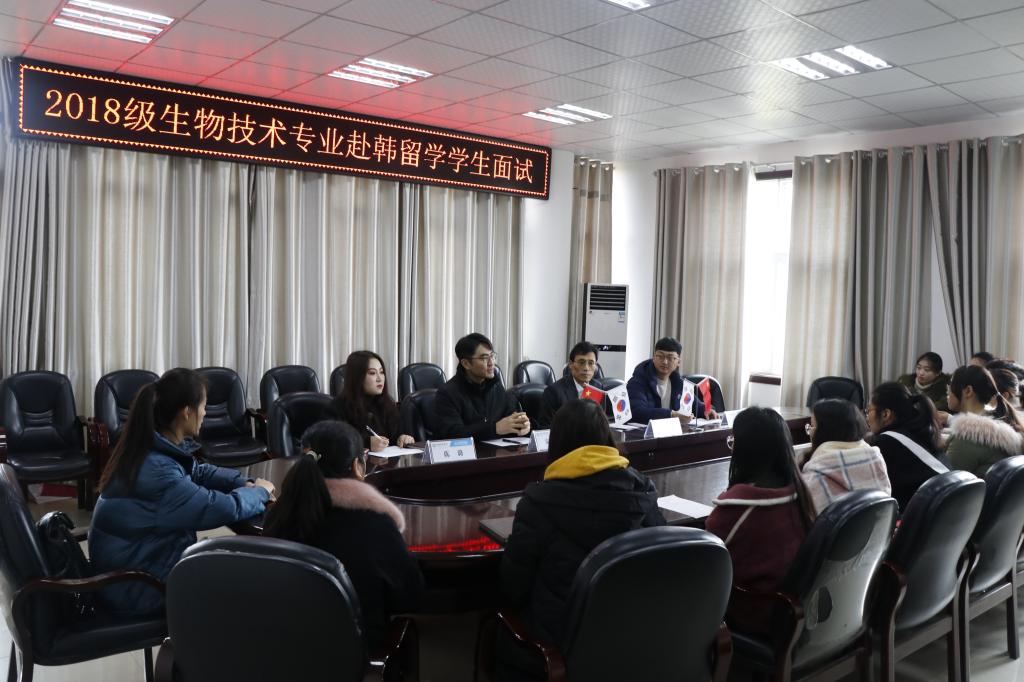 2019年12月19日,在我校为中外合作办学项目授课的韩国汉阳大学教授对我院2018级生物技术专业和土木工程专业申请赴韩留学的学生进行专业面试。面试分别在逸夫楼302室与201室进行。
