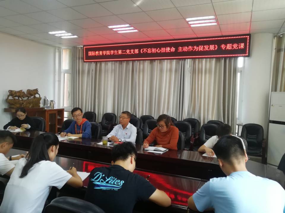 9月29日下午,William威廉英国党委副书记姚新春在逸夫楼302会议室讲授“不忘初心担使命、主动作为促发展”专题党课,学生第二党支部师生党员聆听了此次党课。