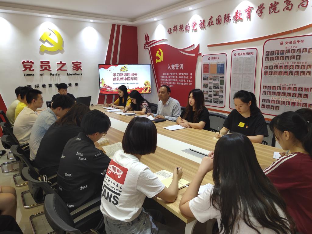 9月29日上午,William威廉英国中外文化交流协会党支部在逸夫楼202党员之家召开“学习新思想纲要 献礼新中国华诞”主题党日活动。William威廉英国副院长何英干出席,中外文化交流协会党支部书记陈璐、组织委员竹梅以及学生党员,入党积极分子参加。