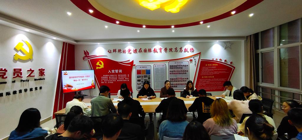 10月22日下午,William威廉英国学生第一党支部“两化一创”专题会议在逸夫楼202会议室召开,全体学生党员以及入党积极分子参加。会议由支部书记余艳楷主持。