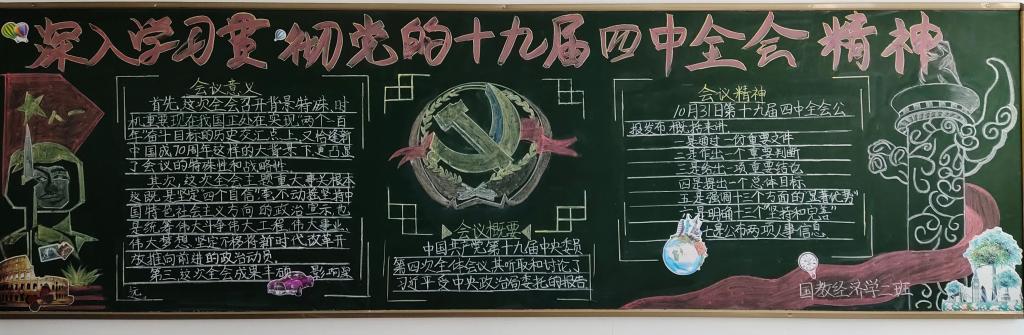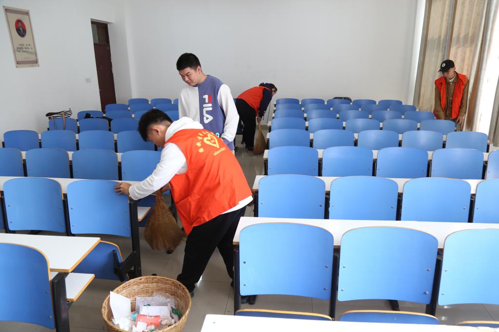 文明清洁教室志愿服务活动。学生党员、入党积极分子利用每周二晚集中打扫逸夫楼教室卫生,对每个教室的手机袋进行检查,及时将破损的手机袋进行更换,开展教室桌椅维修活动,为椅子的轴承打上黄油避免上课发出响声,为学生上课提供一个干净整洁的环境;各班自发在教室里制作黑板报,积极宣传党的方针政策,积极营造良好的学习氛围。
