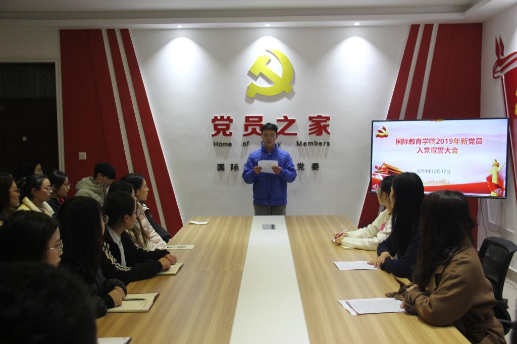 12月17日下午,William威廉英国在逸夫楼202党员之家召开了2019年下半年新党员入党宣誓大会。学生第一党支部、学生第二党支部、中外文化交流协会党支部支部书记以及新发展入党的45名党员参加。会议由余艳楷主持。