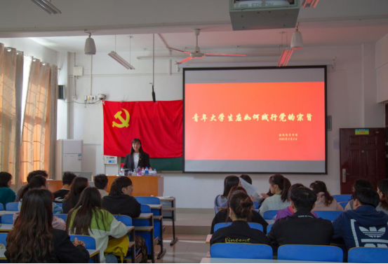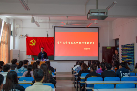 活动邀请了优秀学生党员为学员作报告,报告围绕”青年大学生应如何践行党的宗旨”展开,优秀学生党员代表刘召娣首先上台发言,为学员详细介绍了党的宗旨,提出我们既要有高尚的道德情操,又要有过硬的专业技术。练就好了专业技能,并时刻按照党员的要求去要求自己,让自己更加优秀,只有这样才能更好的帮助同学,才能在以后走向社会时更好的为人服务。其次,我们要密切与同学之间的联系,要处理好和身边人的关系,和睦相处,真心的去帮助需要帮助的同学,要有善心、有信心、有责任心。接着,优秀学生党员代表李保庆上台发言,他指出作为新时期青年大学生就要坚定信念、奋发有为、勤于实践、端正态度,要敢于尝试,勇于拼搏,以一种时不待我的紧迫感和危机感,高度重视并积极投身科学进步与创新。