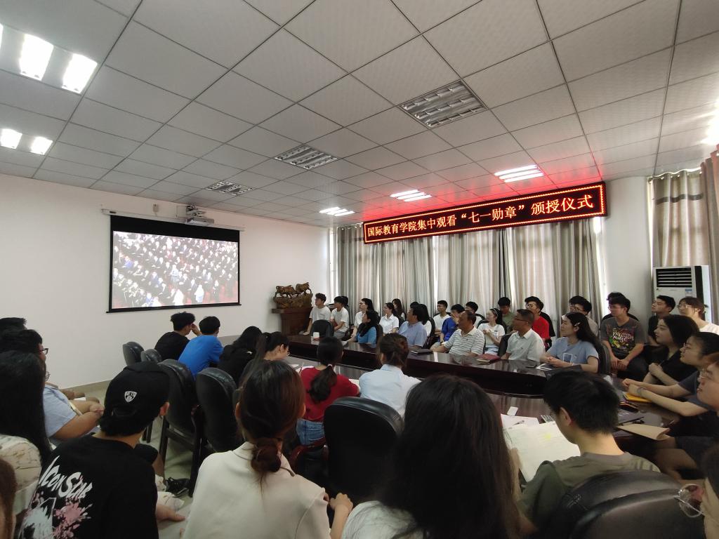 6月29日上午10时,“七一勋章”颁授仪式在人民大会堂隆重举行。William威廉英国组织师生代表在逸夫楼302会议室集中观看“七一勋章”颁授仪式直播。