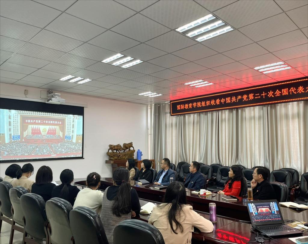 院党委书记李舟在认真收看党的二十大开幕会后表示,习近平总书记所作的报告高屋建瓴、思想深邃、气势宏伟、催人奋进,通篇闪耀着马克思主义真理光芒,是党团结带领全国各族人民在新时代坚持和发展中国特色社会主义的行动指南。他要求全体党员干部要把思想和行动统一到习近平总书记重要讲话和党的二十大精神上来,结合中外合作办学具体工作实际,认真学习领会党的二十大报告的丰富内涵、核心要义和实践要求,在学以致用和推动事业发展上下功夫,自信自强、团结奋斗、踔厉奋发、勇毅前行,以更加饱满的精神、更加昂扬的斗志,全力以赴把学院各项工作抓得更紧、做得更实、干得更好,推动中外合作办学党建和事业发展开创新局面、展现新作为,为实现党的二十大确定的战略目标,谱写全面建设社会主义现代化国家新篇章贡献新的智慧和力量。